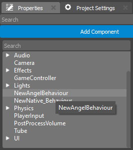 After compiling the code, your component will appear in the drop-down menu of the Add Component button: