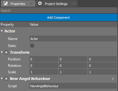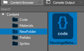 Like many other assets, scripts are typically created directly in the engine editor. Within the Content Browser window, simply right-click and select Native Behaviour for C++ code or Angel Behaviour for AngelScript code from the context menu.